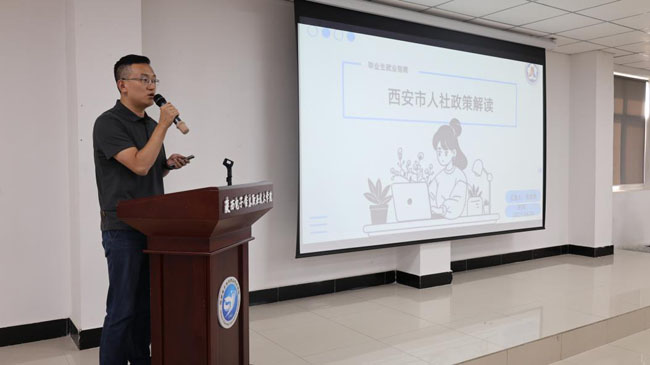 6 月 26 日下午,陕西电子信息职业技术学院在 1207 多媒体教室举办大学生就业创业政策宣讲会。蓝田县人才服务中心副主任代文军、就业服务科副科长张泽林受邀到场,为学生们带来政策专题解读。校就业指导中心处长、信息工程学院院长赵飞参会并致辞,众多辅导员与 2025 届毕业生代表齐聚一堂。此次宣讲会旨在帮助学生精准掌握就业创业政策,明晰职业发展方向,助力学子们在未来职场中找准定位、扬帆起航。