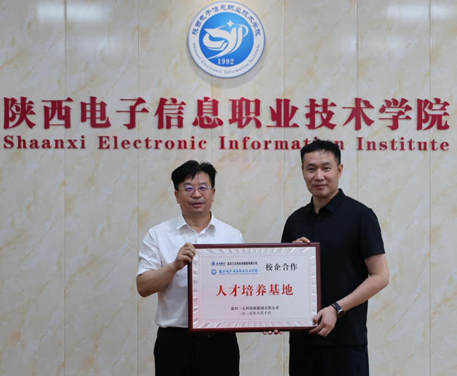 最后,在与会人员的共同见证下,双方举行校企合作签约仪式,并为实习就业、人才培养基地授牌。此次签约及授牌仪式的成功举行,标志着陕西电子信息职业技术学院与蓝田三元科技创新园有限公司的合作进入新的阶段。双方将以此为契机,充分发挥各自优势,在人才培养、实习就业、技术研发等方面开展全方位、深层次的合作,为服务区域经济发展、提升学生就业质量做出积极贡献。