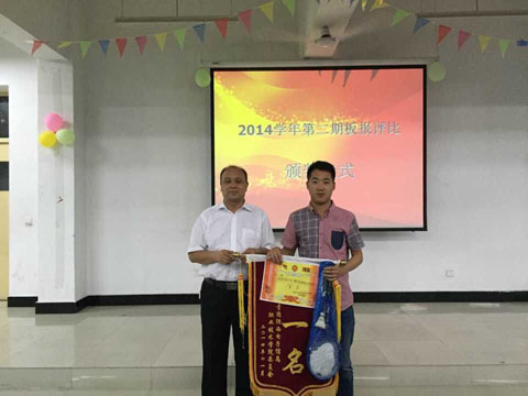 为加强班级之间的交流,增强班级荣誉感和凝聚力,2015年6月2日院团委在多媒体1121教室举行了以“平凡的世界 不甘平凡的奋斗”和“红色的五月”为主题的板报颁奖活动。院学生处处长田志岗、学生处办公室主任张春燕、团委书记兼学生管理科科长李勃及全体辅导员参加了颁奖活动。