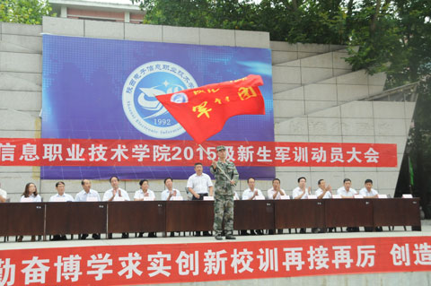 最后,穆耀辉向军训团授旗,预祝同学们学习进步,军训取得圆满成功!
