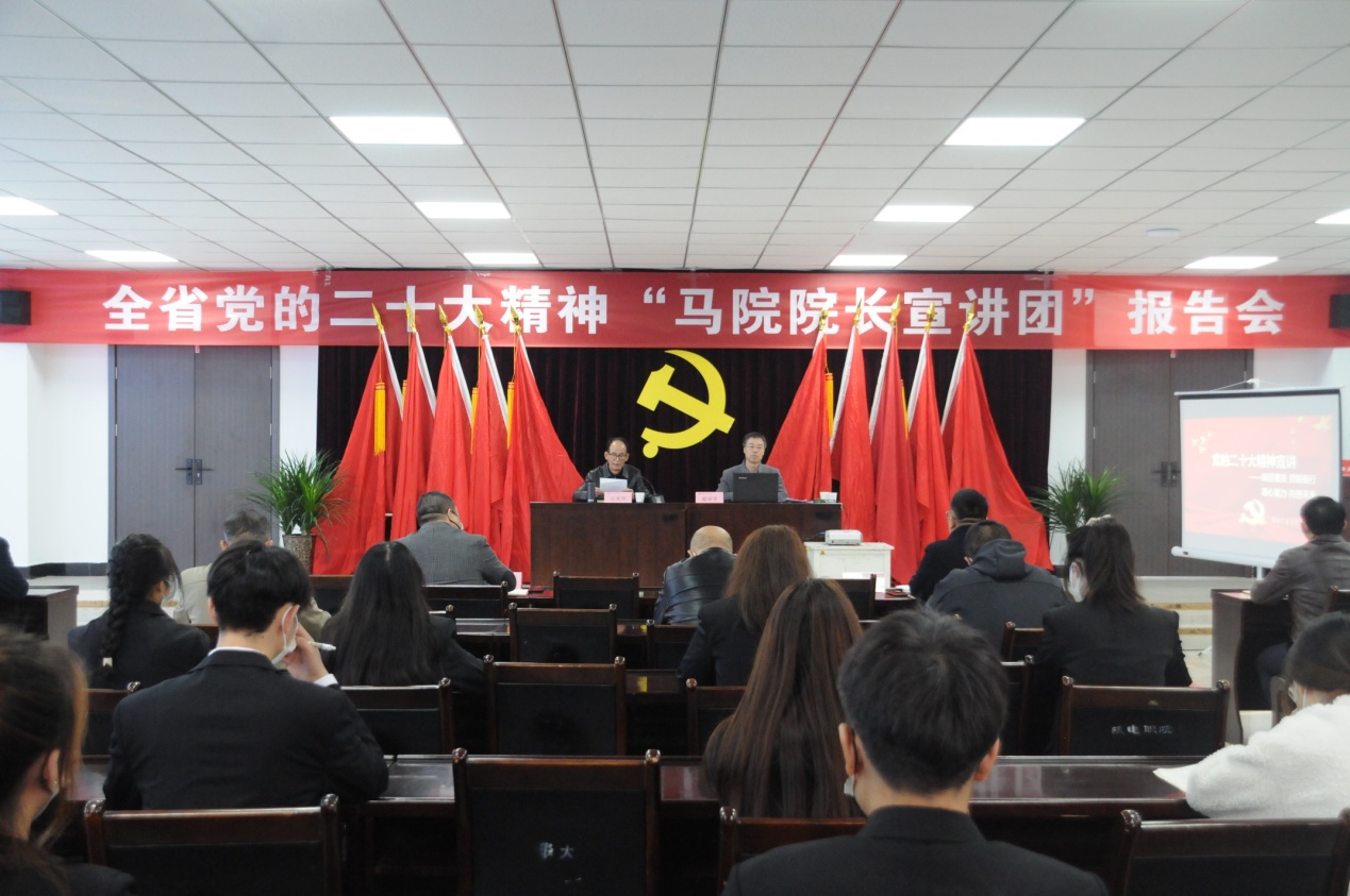 11月17日下午,我院在多功能会议室举办陕西省党的二十大精神“马院院长宣讲团”宣讲报告会。宣讲报告会由全省党的二十大精神“马院院长宣讲团”成员、西安工业大学马克思主义学院副院长、硕士生导师梁华平教授主讲。党委书记石光华主持会议并讲话,院领导班子成员、党委委员,各党支部委员、中层以上干部和师生党员、学生代表参加。