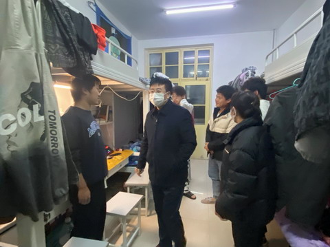 院领导一行来到学生宿舍详细了解同学们学习生活情况,主动征询同学们对学院疫情防控工作的意见和建议,仔细询问同学们的实际困难和需求。