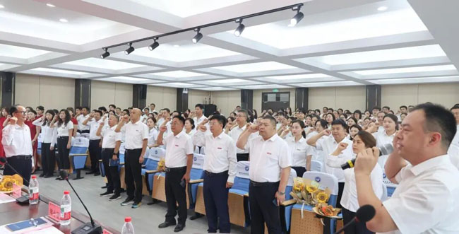 朗诵余音未落,庄严的宣誓仪式便将会议推向高潮。在领誓人的带领下,全体教职工肃然起立、高举右拳,目光坚定如炬。“我将恪守教师职业道德,修身立德,为人师表,做学生为学、为事、为人的引路人……” 铿锵有力、掷地有声的誓言响彻整个报告厅,久久回荡。这不仅是一场仪式,更是全体陕电职院人对坚守立德树人初心、践行 “为党育人、为国育才”使命的又一次深刻铭记,也是对 “强国有我”时代号召的响亮回应。