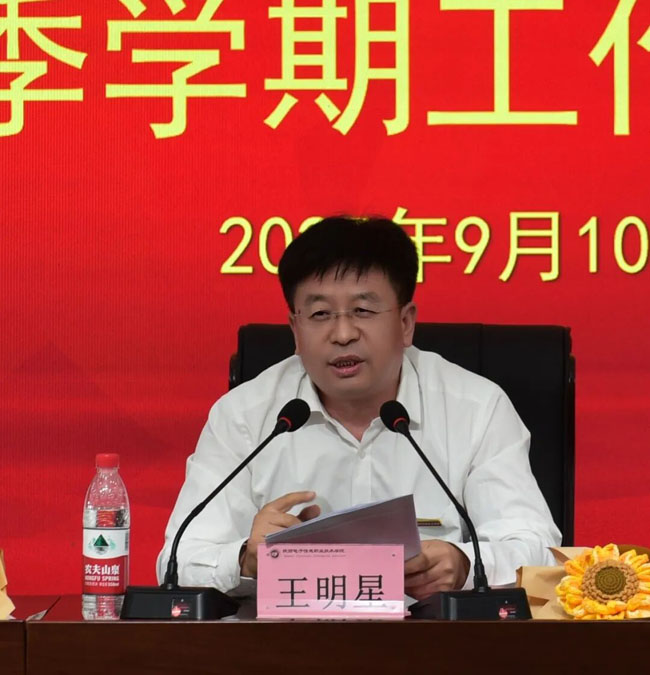 立足新起点,谋划新发展。王明星着重从“强化政治引领,提升党建质量;加强顶层设计,推动事业发展;聚焦内涵建设,提高育人水平;坚持立德树人,细化学生服务;攻坚招生就业,深化开放合作等八个方面,对秋季学期重点工作进行全面细致部署。