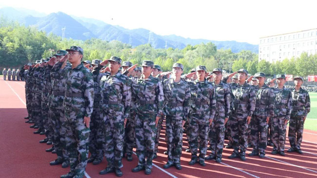 刺杀操表演更是将现场气氛推向高潮。新生们持枪鹄立,枪托紧贴腰际,眼神锐利如鹰。“杀!杀!杀!” 随着指令下达,刺杀动作迅猛凌厉,突刺、防刺、反击,每一个动作都充满力量。