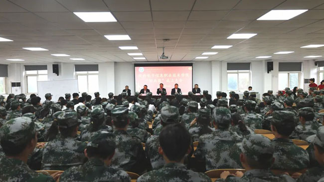 大会现场氛围庄重而热烈,300名标兵身着整齐的军训服,身姿挺拔、精神抖擞,展现出昂扬的青春风貌。会议首先进行军训标兵代表荣誉证书颁发环节,标兵代表们迈着坚定的步伐依次上台,从领导手中接过红彤彤的荣誉证书,证书上的字迹不仅是对他们过往努力的肯定,更凝聚着学院对青年学子的殷切期望,台下不时响起阵阵掌声,为标兵们送上祝贺。