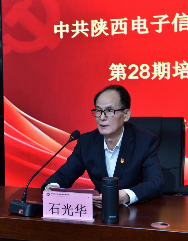 石光华在讲话中回顾了中国共产党发展的光辉历程,一百多年来,我们党由小到大、由弱到强,从初创时50多名党员的小党,发展成为拥有逾1亿名党员的大党,成为领导中国76年的先进执政党,成为建设中国特色社会主义的坚强核心,创造了世界政党发展史上的奇迹。这充分表明,我们党无愧为坚守初心使命、走在时代前列、人民衷心拥护、永葆生机活力的马克思主义执政党。他强调,通过党校培训,就是要使学员们从根本上了解党,从情感上热爱党,从行动上追随党,坚定不移跟党走,积极践行社会主义核心价值观,积极投身到学习、工作和学院的改革发展中去,在新时代新征程上贡献青春力量。