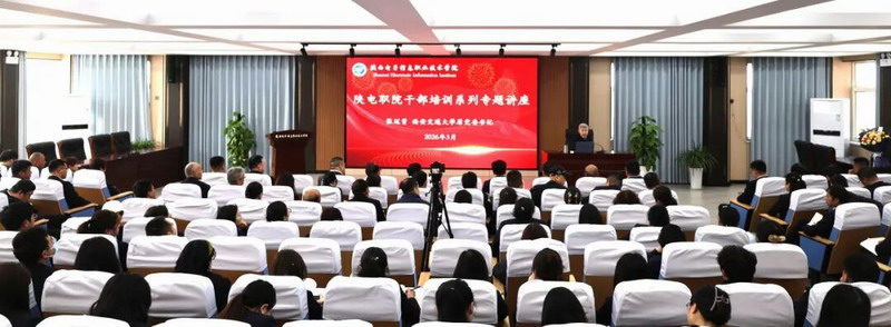 311日,陕西电子信息职业技术学院2026年春季学期干部培训系列专题讲座在学院报告厅举行。省人大常委会原副主任、西安交通大学原党委书记张迈曾受邀作专题讲座。院领导班子成员、全体干部及教师、学生代表现场聆听,学院理事长、院长王明星主持讲座。