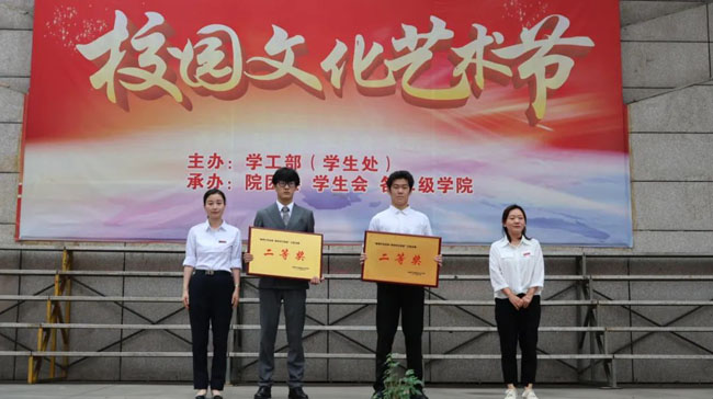 紧接着,激动人心的时刻到来了。党委副书记、纪委书记马放奇宣布了比赛结果:机电工程学院的《大中国》凭借出色的演唱与精彩的表演,荣获一等奖;文理学院的《没有共产党就没有新中国》、机电工程学院的《走向复兴》荣获二等奖;经济与贸易学院的《我和我的祖国》、信息工程学院的《祖国不会忘记》《保卫黄河》荣获三等奖。