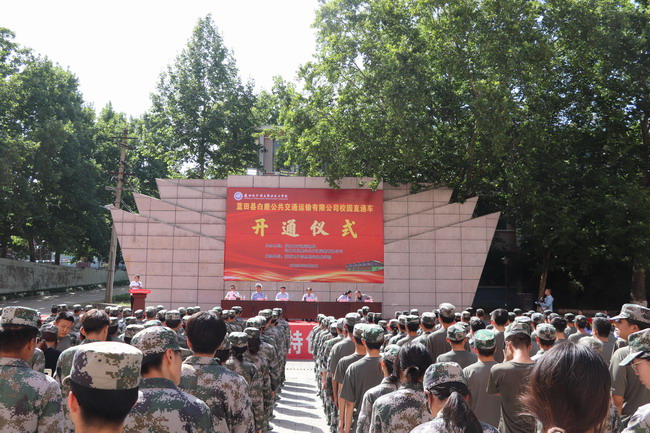 王明星在致辞中指出,校园直通车既是学院的窗口,也是校园一抹靓丽的风景线,是学院坚持以师生为本,践行“我为群众办实事”,提高后勤保障、服务师生的具体体现。校园直通车的开通,充分体现了蓝田县交通运输局和蓝田县白鹿公共交通运输有限公司支持教育、关爱师生、尊重人才的优秀企业文化和崇高的社会责任感,希望全体师生文明出行,共同营造安全、文明、有序的交通环境。