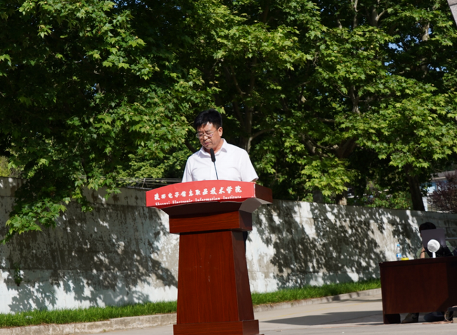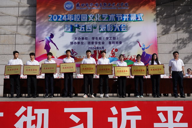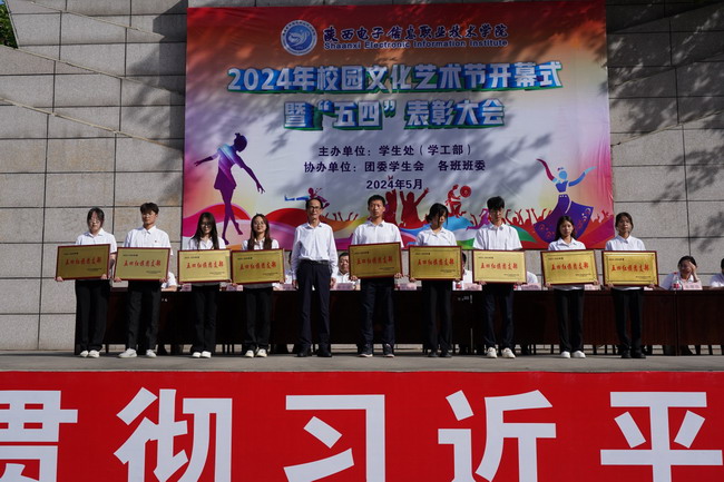 院党委委员、副院长李泽宇宣读《陕西电子信息职业技术学院“青春心向党 挺膺向未来”主题活动表彰决定》。随后,各领导为获得荣誉的先进集体和先进个人颁奖。获奖学生代表2302班学生徐一辰作了发言。