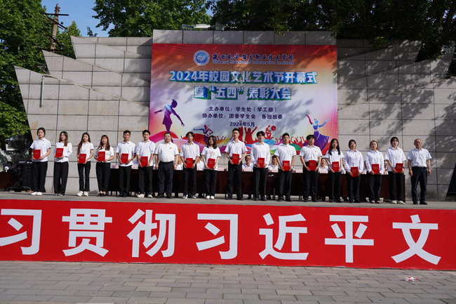 为深入学习贯彻习近平总书记关于青年工作的重要思想和关于教育的重要论述,贯彻落实党的二十大关于“推进文化自信自强、铸就社会主义文化新辉煌”的决策部署,推进学习贯彻习近平新时代中国特色社会主义思想主题教育走深走实,5月14日下午,我院在教学楼广场举行2024年校园文化艺术节开幕式暨“五四”表彰大会。院党委书记石光华出席并宣布2024年校园文化艺术节开幕,理事长、院长王明星出席并致开幕辞,院各领导、各部门负责人,全体辅导员和学生参加开幕式。开幕式由学生处副处长赵飞主持。