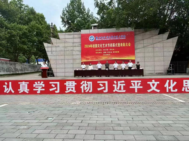 为学习宣传贯彻党的二十大精神,以习近平新时代中国特色社会主义思想为指导,深入落实习近平总书记关于青年工作的重要思想,我院以“青春心向党、挺膺向未来”为主题开展了一系列活动。6月19日下午在教学楼广场隆重举行2024年校园文化艺术节闭幕式暨表彰大会。院党委书记石光华,理事长、院长王明星出席并为获奖同学颁奖。院各领导参加活动,党委委员、副院长李泽宇致辞。团委副书记王大成宣读获奖学生名单,学生代表杨敏莉发言。学生处副处长赵飞主持会议。宣传部、学生处、团委学生会及全体辅导员和学生等2000余人参会。
