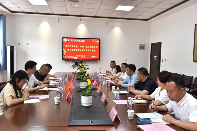 丁逸中一行来校后和王明星等院领导进行了座谈交流。王明星介绍了我院基本情况,丁逸中介绍了健鼎(无锡)电子有限公司基本情况。双方就人才培养、实习就业、联合开发培训科目、实施订单培养、构建长效沟通机制等事宜进行了座谈交流,深化了未来合作事宜。
