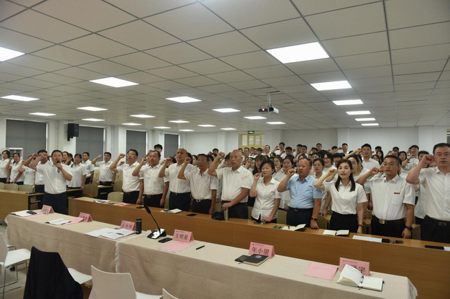 全体教职工举行了宣誓仪式。大家共同表示忠诚党的教育事业,贯彻党的教育方针,做有理想信念、有道德情操、有扎实学识、有仁爱之心的“四有”好老师,为实现中华民族伟大复兴的中国梦贡献力量,为党和人民的教育事业奋斗终身。