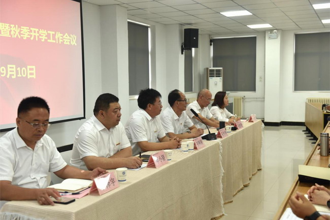 王明星在会上作了主题报告。他从“党的建设工作全面加强;教学科研工作逐步提升;学生管理工作成效显著;生就业工作取得新突破;师生权益保障畅通有序;校园文化建设蓬勃发展;办学保障和校园环境显著改善;安全稳定工作扎实有效”八个方面对上学期工作做了全面总结。提出秋季学期和今后一个时期工作的基本思路是坚持以习近平新时代中国特色社会主义思想为指导,坚持党对学校工作的全面领导,全面贯彻党的教育方针,认真落实立德树人根本任务,坚持依法规范办学,坚持稳定安全压倒一切,实施“人才强校”战略,深化教育教学改革,加强招生就业工作,开拓创新,努力实现学院事业高质量发展。