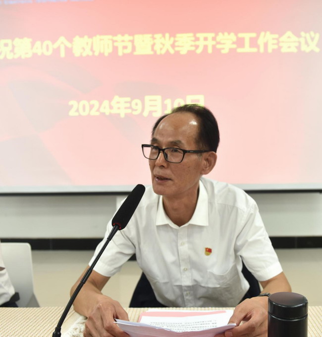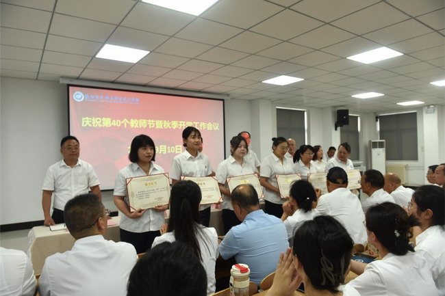 为大力弘扬教育家精神,在全院营造尊师重教浓厚氛围,激励全校广大教师和教育工作者落实立德树人根本任务,积极投身教育强国建设,9月10日,我院隆重召开庆祝第40个教师节暨秋季开学工作会议,对在2023至2024学年组织学生参加各级各类技能大赛中获奖的优秀指导教师进行表彰,对上学期的工作进行总结,安排部署本学期以及今后一个时期的工作。理事长、院长王明星,院党委书记石光华出席会议并讲话。学院全体教职工参加会议。会议由副院长年小望主持。