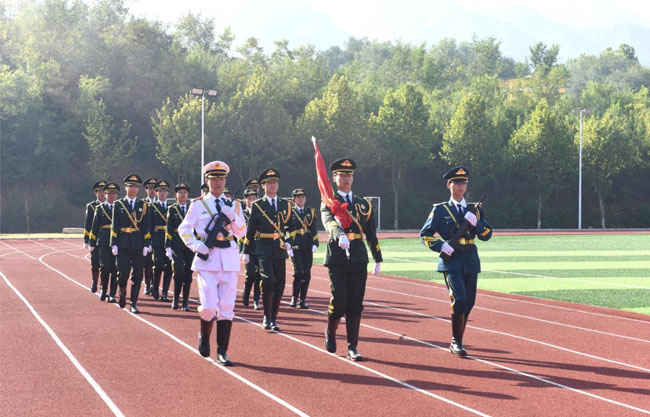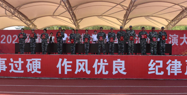 他强调,通过军训,同学们增强了国防意识,树立了爱国情怀,增长了军事本领,强化了军事素质;培养了学生良好的生活习惯和时间观念,学会了自我管理和自我约束;同学们学会了坚持,懂得了团结、守纪,增强了集体荣誉感,变得坚强、自信,培养了良好的素质,达到了预期效果。军训中获得的这些宝贵的作风、素质和优秀品质将永远伴随同学们未来的学习和生活,伴随他们走向美好的明天。