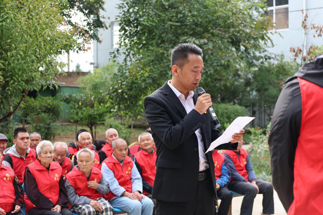 王大成发言提出:值此重阳佳节,我院师生代表特意为聚善堂养老院的老人们准备了一系列节目,希望用歌声献上我们最真心的问候,用舞蹈表达我们最诚挚祝福,愿你们幸福安康。