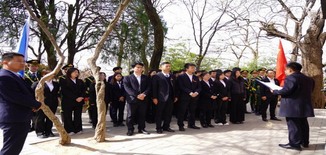 活动在庄严肃穆的氛围中拉开序幕。学校国旗护卫队迈着整齐有力的步伐,护送花篮缓缓走向陵园。鲜花簇拥的花篮,寄托着全体人员对革命先烈的无限追思与崇高敬意。
