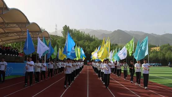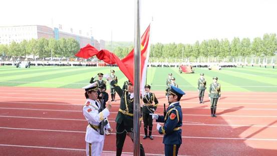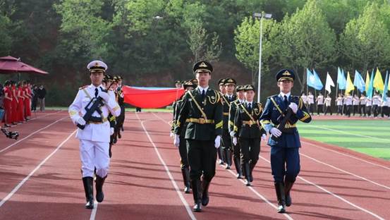 入场仪式结束后,全场庄严肃立,举行升国旗仪式。在嘹亮的国歌声中,五星红旗冉冉升起,全体师生行注目礼,激昂的歌声回荡在校园上空,爱国情怀与体育精神在此刻交融,激励着每一位师生奋勇向前。