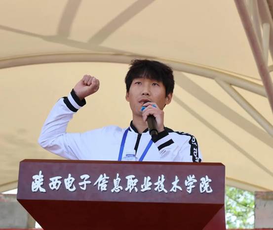 随后,王明星为本次运动会致开幕词。他言辞激昂,将运动会比作一场体魄与意志的较量,更是青春与梦想的碰撞。他鼓励同学们在百米跑道上勾勒追风的身影,在跳高横杆前丈量凌云气魄,用汗水浇灌出陕电健儿最动人的英姿。王明星勉励同学们以赛为鉴,将运动融入日常,让“每天锻炼一小时”成为青春的标配,以蓬勃朝气迎接未来挑战。同时,他希望同学们能将“勤奋博学,求实创新”的校训融入运动精神,将“做中学、学中做”的实践理念贯穿成长始终,发扬更快、更高、更强的奥运精神,赛出风格、赛出水平、赛出成绩,用拼搏成就梦想。他激励愿全体师生以体育为纽带,凝聚共识、提振精神,共同谱写学院高质量发展的新篇章!