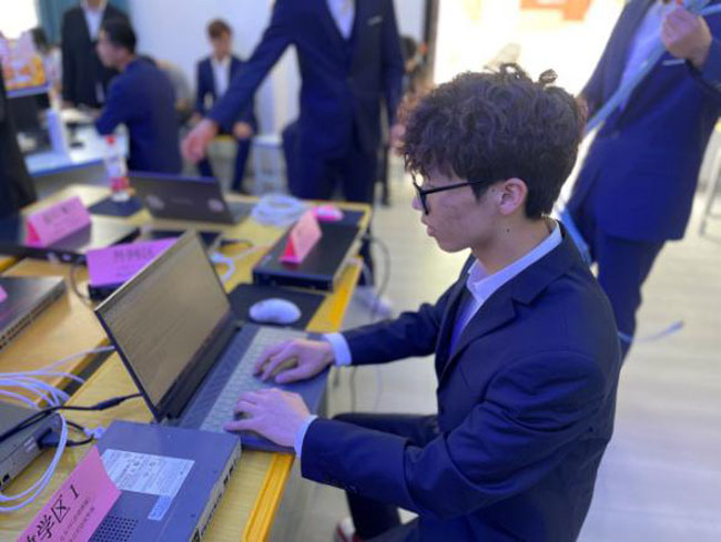 主持人宣布比赛开始后,参赛选手情绪高涨,紧锣密鼓并分工明确的进行组网及命令配置,他们需在1小时内完成网络拓扑设计、设备配置、策略优化及故障修复等任务,并接受实时压力测试与现场答辩。