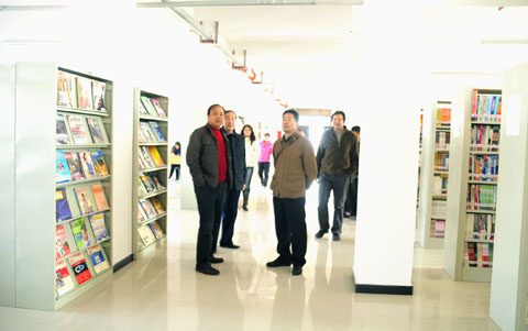 图为检查组查看我院图书馆消防安全情况