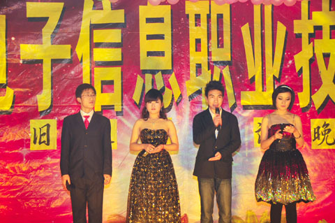 2010年12月21日晚上,数控系、通信系联合主办的“辞旧迎新”联欢晚会在我院餐厅三楼大礼堂举行。出席此次晚会的领导有院长邢永华、院党委副书记武光玉、院工会主席兼院办公室主任杨瑞卿、教务处处长刘战鹏、通信系主任杨立功、数控系副主任黄小华。