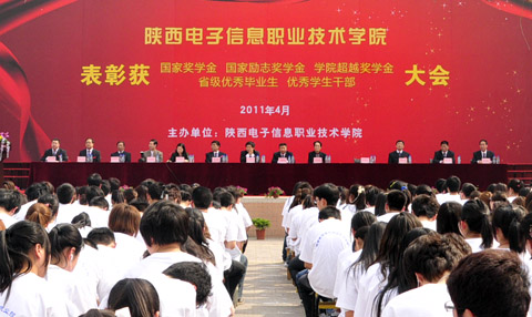 2011年4月13日,我院隆重召开全院师生大会,表彰获国家奖学金、国家励志奖学金、院超越奖学金、省级优秀毕业生、省级优秀学生干部和院第六届书画展获奖者。会议由院理事会理事、院长助理年小望同志主持,华西教育投资公司董事长王明亮、院理事会理事长兼院常务副院长穆耀辉、院党委书记李云济、院长(院理事会理事)党惠清、名誉院长(院理事会理事)程凤珍、副院长邢永华、副院长陈建铎、院党委副书记武玉光、院长助理田志岗、院工会主席杨瑞卿及各系、部、处、室领导出席了会议。