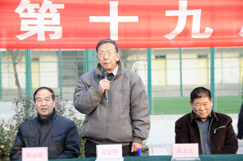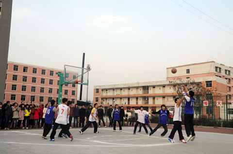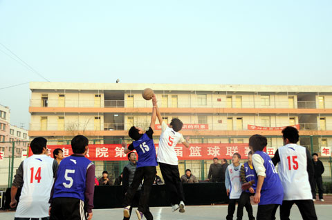 根据学院体育竞赛安排,在基础部体育教研室和院团委的组织下,经过一个多星期的筹备,我院第十九届篮球联赛开幕式于12月16日下午在院篮球场举行。副院长陈建铎、党委副书记武玉光、院工会主席杨瑞卿、教务处处长刘战鹏、学生处处长马放奇以及各系部领导出席了开幕式。参加开幕式的还有各系部的篮球运动员、学生代表及拉拉队队员。