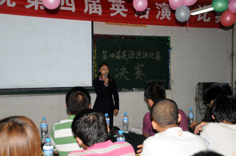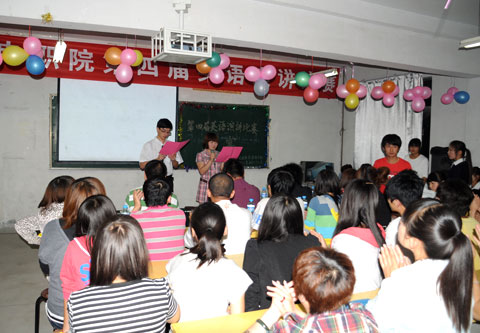 2012年5月28日下午,由院团委主办、团委社团部英语俱乐部承办的第四届英语演讲比赛在305多媒体教室圆满落下了帷幕。本次比赛分为初赛和决赛两个阶段。初赛阶段选出了十名优秀选手进入决赛。经过两小时的激烈角逐,曹娇同学获得一等奖。1104班王太转、1109班原江华获得二等奖,1109班李婉、1104班周毛,1109班马慧分别取得三等奖。1103班李军芳获得了优秀奖,1103班王雅楠获得了最佳人气奖。