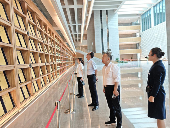 西安国家版本馆坐落于秦岭北麓的圭峰山下,作为中华文化基因库的重要载体,肩负着赓续中华文脉、传承文明薪火的时代使命。活动期间,支部党员参观了保藏区文济厅书墙,“楮墨遗珍 万里同风——丝绸之路版本展”以及“赓续文脉踔厉前行——中华文化经典版本展(西部篇)”两大专题展。