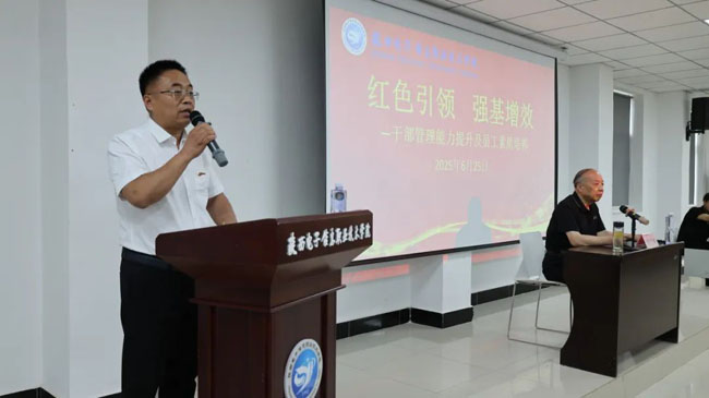6 月 25 日下午,陕西电子信息职业技术学院举办 “红色引领、强基增效,干部管理能力提升及员工素质培养” 专题讲座。中共陕西省委党校原副校长、巡视员,教授,西安信息职业大学原党委书记,西安科技大学博士生导师郑志飚受邀开讲,为全体干部职工注入红色精神动力。讲座由党委委员、副院长李泽宇主持,现场学习氛围浓厚。
