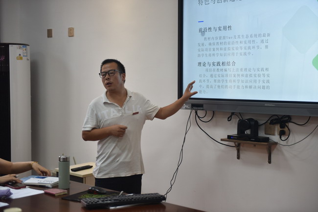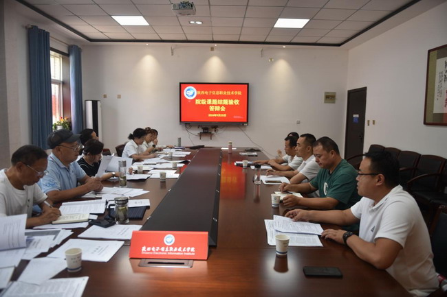 答辩会现场气氛热烈,承担《信息技术对高等职业教育的变革与影响研究》《岗实习背景下民办高职院校人才培养新模式的探索与研究》《Vue开发实战教材立体化建设》的课题负责人夏永军、党蕊娟、李小奎依次对各自承担的科研项目进行了详细汇报。他们从项目的研究背景、目标、方法、成果以及创新点等方面进行了全面阐述,并回答了评委们的提问。