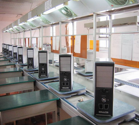 计算机企业化生产实训:开设生产工艺、计算机硬件知识、流水线生产、计算机应用软件使用、计算机维护及维修、计算机配置及选型、计算机外部设备等综合实训。同时,营造出一种工厂生产氛围,让学生在流水线上进行计算机组装调试,并且有明细的分工,以提高学生的团队意识及责任心,使学员掌握计算机选型、配置、组装和维护维修的技能。